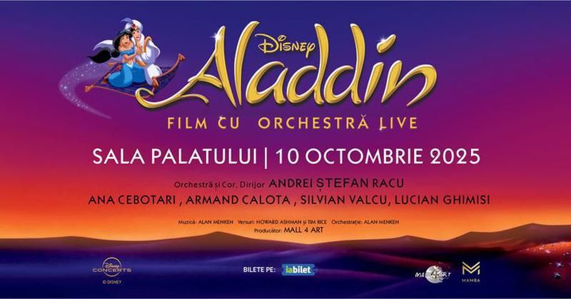 Pe 10 octombrie 2025, Sala Palatului va găzdui spectacolul „Aladdin in Concert”, cu muzica premiată Oscar interpretată live sub bagheta dirijorului Andrei Ștefan Racu.
