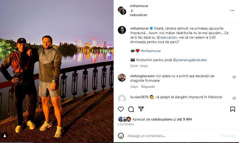 „Este un alt moment de relaxare: mă duc dimineața în parc, să alerg, când toată lumea doarme. Cu Mihai Morar sau nu, dar îmi place să alerg. Nu este ușor să te trezești la 4 jumătate dimineața… De ce la această oră? Pentru că este singurul moment din zi când, după ce vin din parc, am o jumătate de oră la dispoziție în care îmi fac o cafea pe întuneric, o beau și stau și mă gândesc la ale mele…
